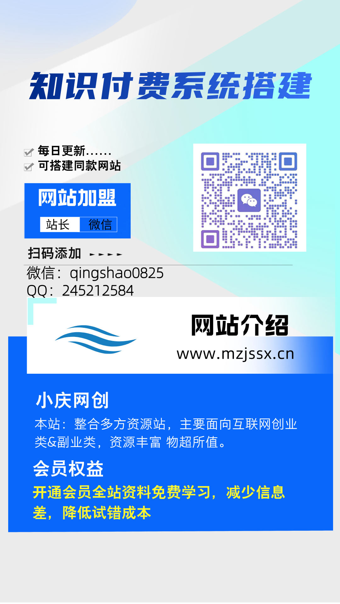 加盟XXX网创,加盟搭建同款知识付费资源网站,实现长期稳定被动收入~